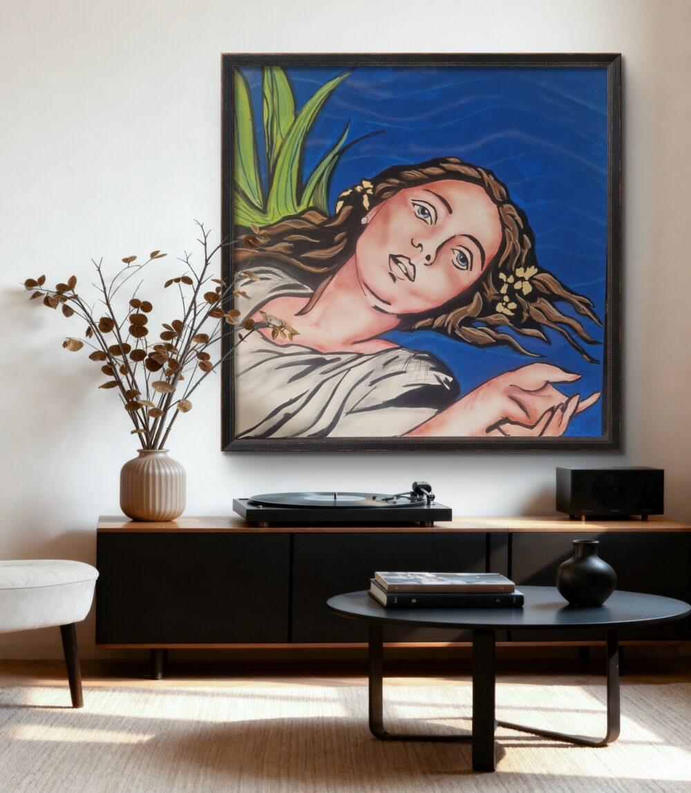Ich präsentiere stolz mein neuestes Werk: ein 80x80 cm großes Gemälde, das die tragische Figur Ophelia aus Shakespeares Hamlet in einem frischen Pop-Art-Stil einfängt. Mit einer Mischung aus Acryl und Airbrush-Techniken habe ich versucht, die emotionalen Tiefen und die Schönheit ihrer Geschichte lebendig werden zu lassen.